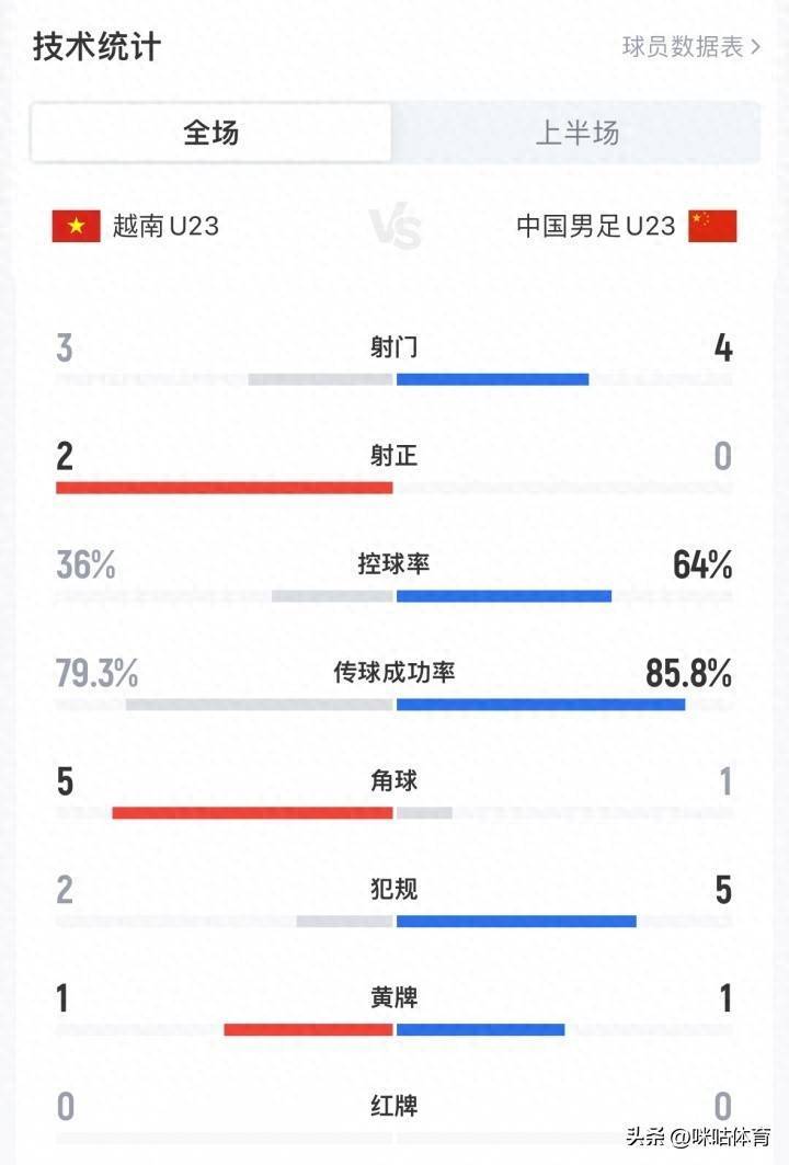 U23亚洲杯半决赛,国足U23半场结束暂0-0越南U23,目前国足U23的控球率高达64%。