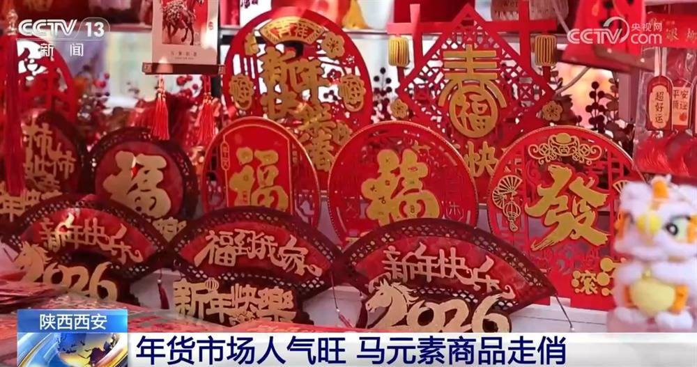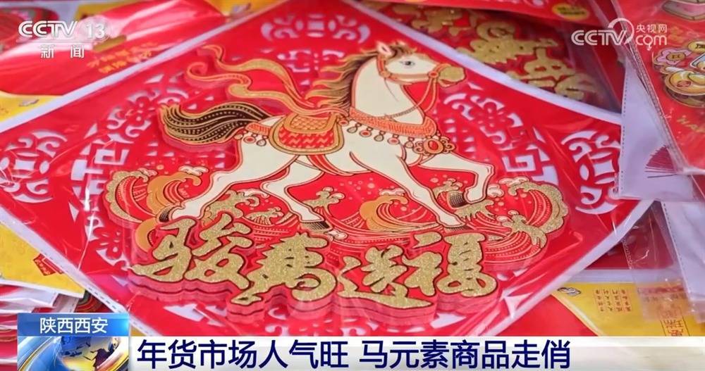 r随着春节临近,年货市场上马元素的年货正在马不停蹄地“上新”。这几天,陕西西安的年货市场一片红火年味十足,各种融入马年元素的春联、福字格外走俏,“马”上有福的喜庆劲直接把过年氛围拉满。