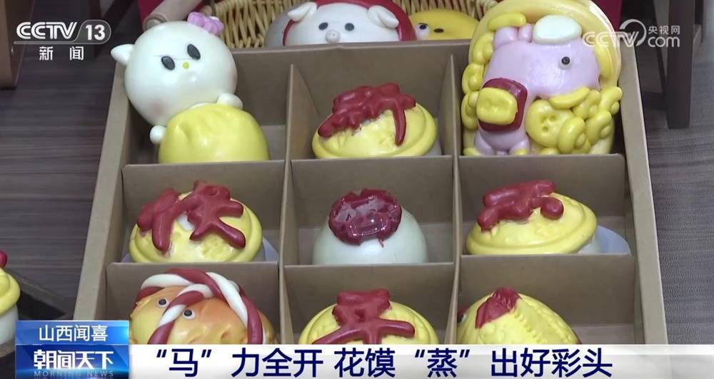 在闻喜县的这家花馍工坊里,店主樊殊伯正在制作花馍,他将马元素融合在了花馍的设计中,造型美观、寓意吉祥。
