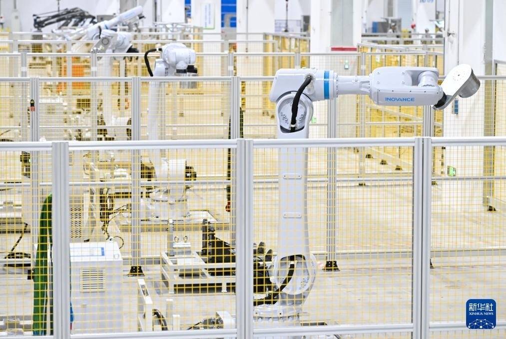 3月17日,在位于南京市江宁开发区的汇川技术南京基地自动化车间内,机器人在进行出厂前测试。新华社记者 季春鹏 摄