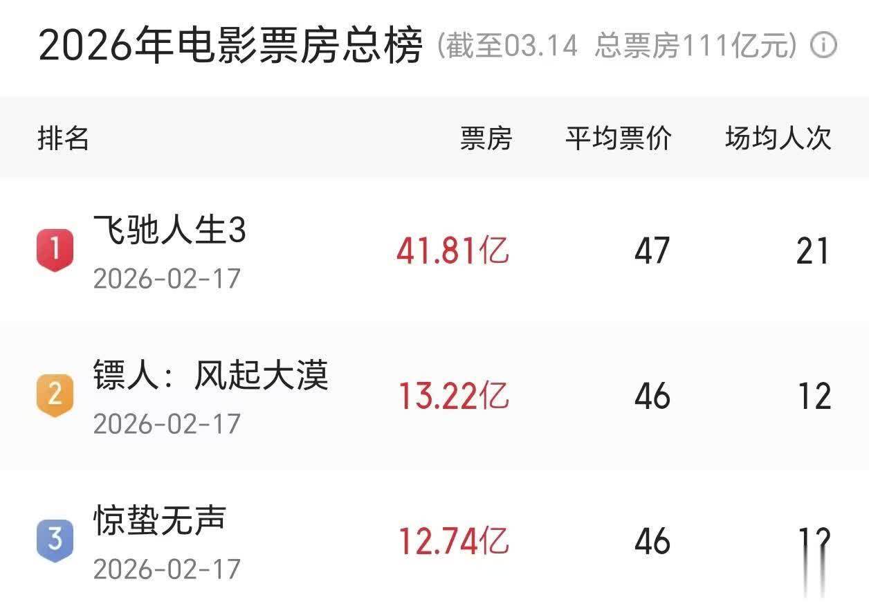 现在,票房表现最好的电影是沈腾主演的《飞驰人生3》,它的总票房目前还没有达到42亿人民币。而之后位居第二名的《镖人》,票房成绩直接断档,和《飞驰人生3》相比少了近30亿人民币。
